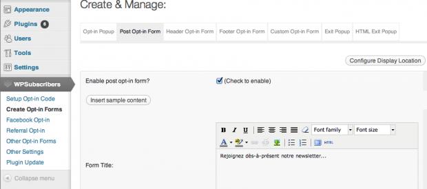 NB : voici également le tuto en anglais pour ce point : http://www.wpsubscribers.com/tutorials/ ... -form.html